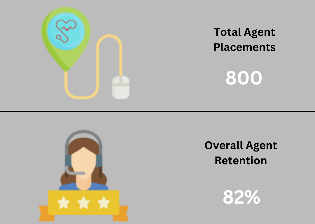 Our Customer Practice was retained to fill 275 licensed agents for the country’s leading Medicare marketplace. Not only did we fulfill this initial commitment, but in response to an unexpected surge in staffing needs in September, we went above and beyond to hire an additional 75 agents. By adapting quickly and leveraging our deep talent pool, we ensured our client’s operational goals were met seamlessly. Having partnered with this marketplace for years, we were able to absorb the increase without requiring additional labor as our team was able to assist to drive onboarding, licensing, and contracting. As their AEP season wraps, we have come to learn that the 2024 season is the highest rate of conversion in a decade for the publicly traded entity.