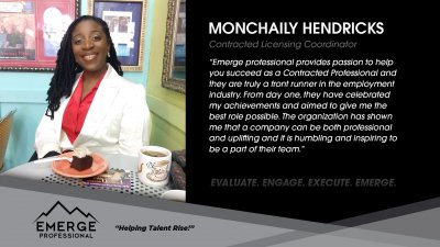 Molly Hendricks has been working as a Contracted Professional through Emerge since July. In her role as a Licensing Coordinator, she is able to showcase her talents in data entry […]